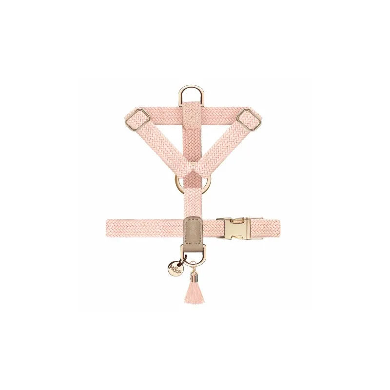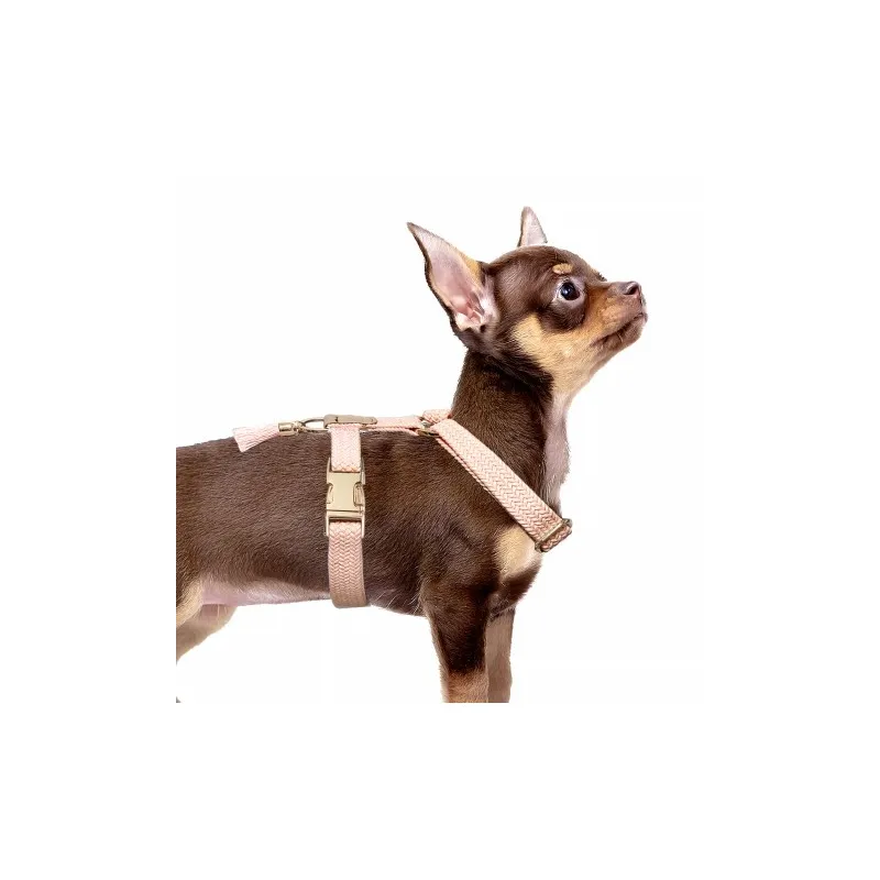 Su estética en tonos suaves y detalles cuidados lo convierten en una opción ideal para quienes buscan un arnés cómodo, seguro y con un diseño elegante.