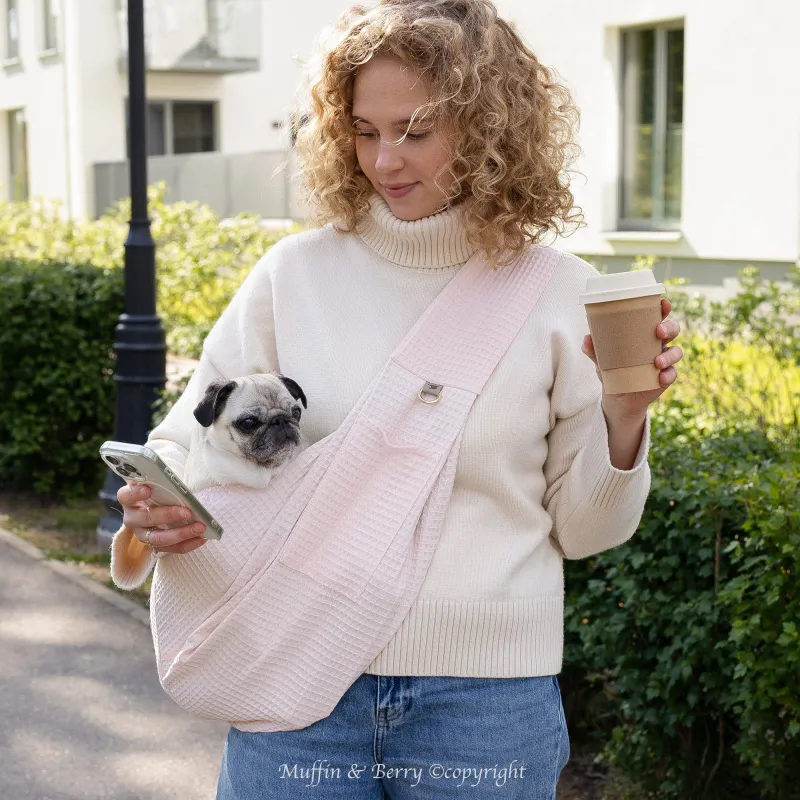 Transportín tipo bandolera pensado para llevar a tu mascota cerca de ti con comodidad, ligereza y estilo. Su diseño resulta especialmente práctico para las salidas del día a día y para los meses de primavera y verano, gracias a su confección en algodón natural y a su estructura ligera y transpirable.