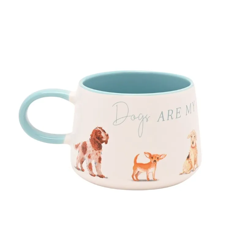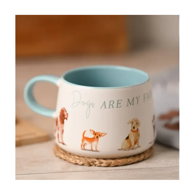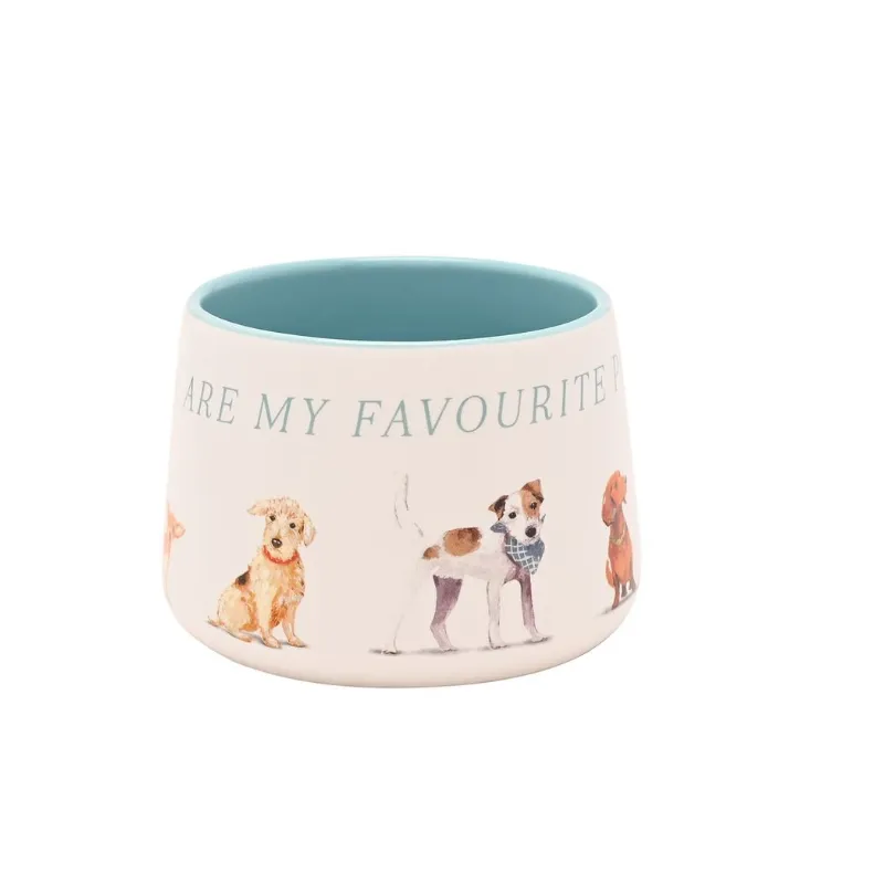 Esta taza destaca por su diseño decorado con múltiples ilustraciones de perros, acompañado del mensaje “Dogs Are My Favourite People”. Su estética sobre fondo blanco aporta un aire limpio y moderno, ideal para cualquier cocina, oficina o espacio de descanso.
