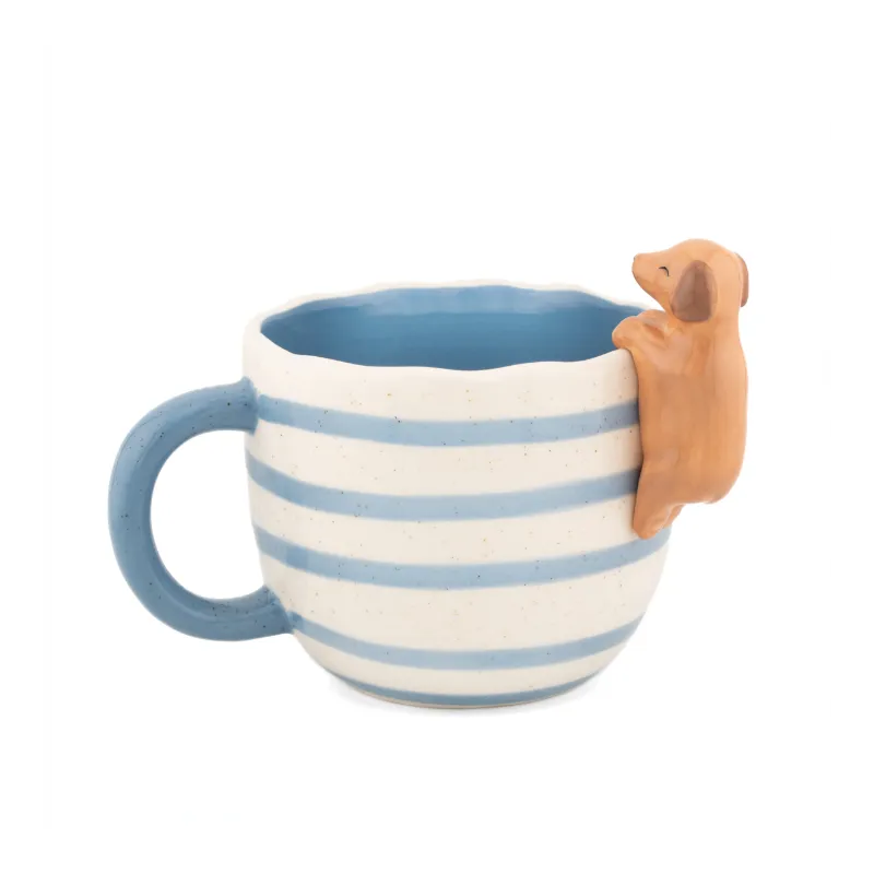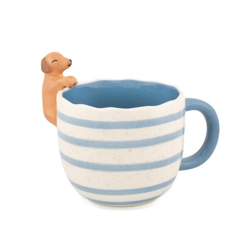 Destaca por su simpático diseño de perro salchicha “asomando”, un detalle decorativo que aporta un toque divertido y diferente. Perfecta para quienes buscan piezas originales que destaquen en su cocina o escritorio.