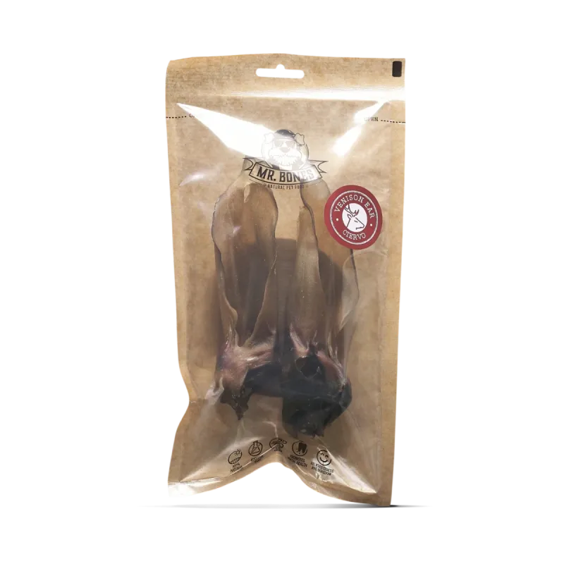 Snack natural para perros elaborado con 100% oreja de ciervo deshidratada.