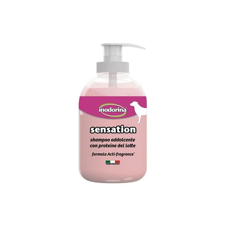 El champú acondicionador Inodorina Sensation con proteínas de leche está diseñado para limpiar suavemente el pelaje de perros y gatos, aportando hidratación, suavidad y un acabado sedoso. Su fórmula ayuda a eliminar la suciedad y los malos olores, dejando una fragancia agradable y duradera.