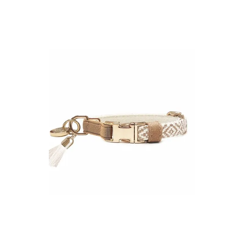 Este collar pertenece a la colección de accesorios de Milk&Pepper, marca reconocida por su enfoque en productos de estética actual y alta calidad. Está diseñado con materiales resistentes que favorecen la durabilidad y el bienestar del animal. Incorpora un sistema elástico de seguridad que permite que el collar ceda en caso de enganche, ayudando a evitar riesgos y proporcionando mayor protección.