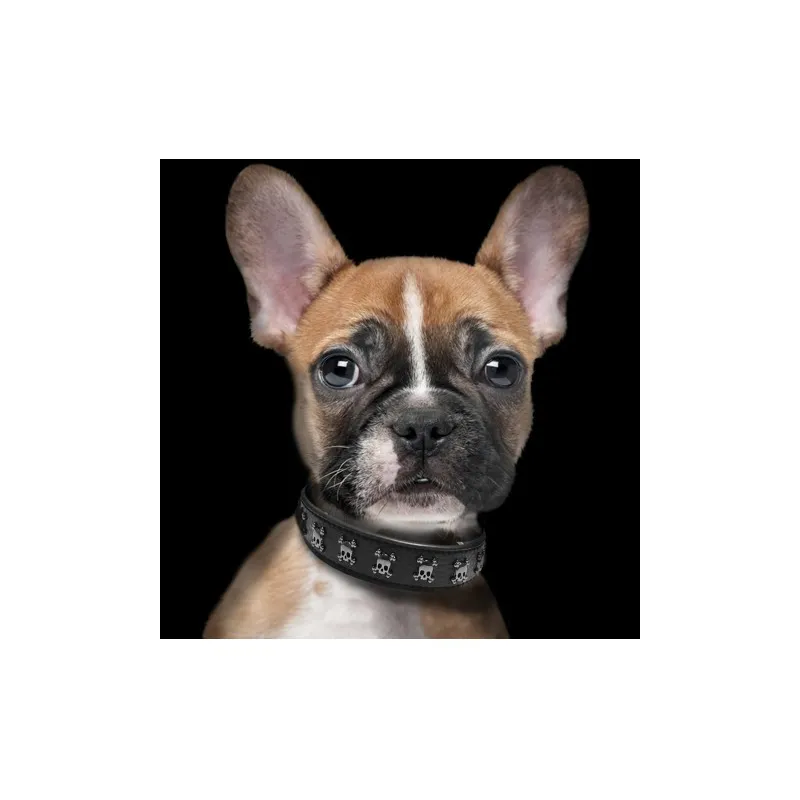 El modelo Calavera combina estética rock con funcionalidad, ofreciendo un collar robusto pero cómodo para el uso diario. Su estructura está pensada para proporcionar un buen ajuste y resistencia, adaptándose a diferentes tamaños de perro gracias a su variedad de medidas. Además, puede combinarse con la correa Smart Black de la misma colección para lograr un conjunto completo y coordinado.
