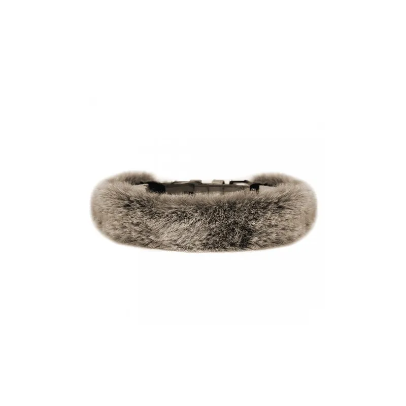 Este collar está fabricado en material símil piel con acabado en relieve, lo que le confiere un aspecto elegante y actual. Incorpora un forro interior también en material sintético que mejora la comodidad en contacto con el cuello del animal. Cuenta con una hebilla metálica disponible en acabado titanio o dorado, aportando un detalle refinado al conjunto, así como una funda extraíble en imitación de pelo que permite modificar el estilo del collar y facilitar su mantenimiento.