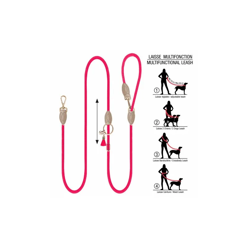 Formato ajustable de aproximadamente 125 a 220 cm de largo, esta correa permite modificar la longitud según el uso, ofreciendo gran flexibilidad para diferentes tipos de paseo. Ancho de 9 mm.