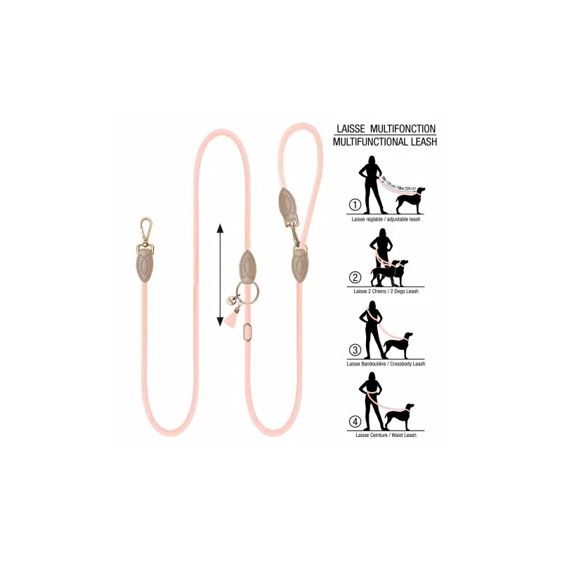 Formato ajustable de aproximadamente 125 a 220 cm de largo, esta correa permite modificar la longitud según el uso, ofreciendo gran flexibilidad para diferentes tipos de paseo. Ancho de 9 mm.