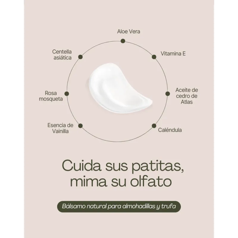 Bálsamo nutritivo y reparador diseñado para hidratar en profundidad la piel de las almohadillas y la trufa, ayudando a prevenir la sequedad, las grietas y las molestias derivadas del día a día.