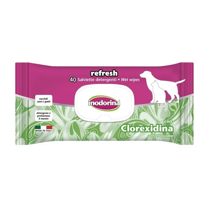 Las toallitas higiénicas Inodorina con clorexidina están especialmente formuladas para la limpieza y desinfección diaria de perros y gatos. Gracias a su acción antiséptica, ayudan a eliminar bacterias y a mantener la piel y el pelaje en óptimas condiciones, siendo ideales para una higiene más completa en cualquier momento.