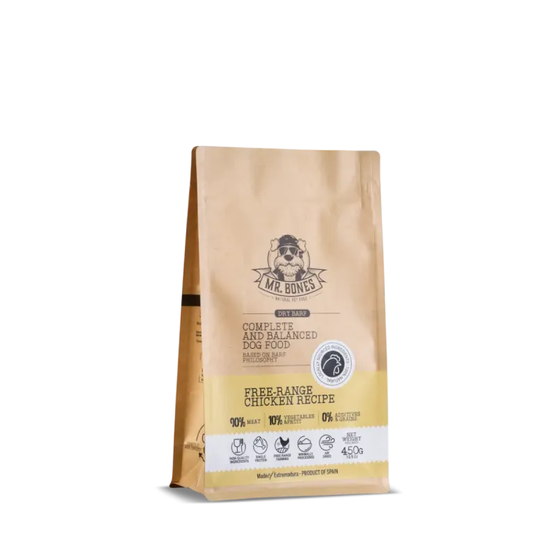 El Dry BARF de Pollo de Mr. Bones es una alternativa práctica y natural a la dieta BARF tradicional, diseñada para ofrecer a tu perro una alimentación completa, equilibrada y biológicamente apropiada sin las complicaciones de la comida cruda.