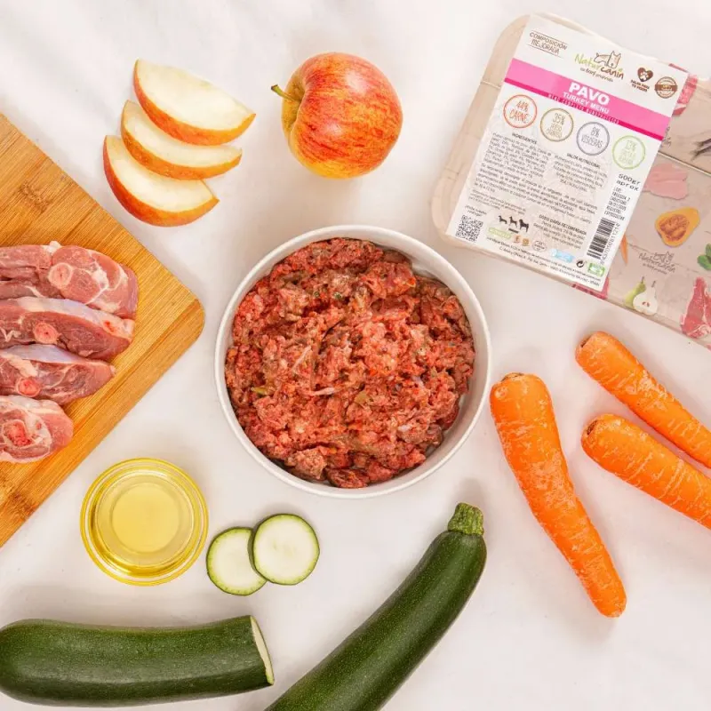 La gama BARF de Naturcanin está diseñada para ofrecer una alimentación natural, cruda y equilibrada para perros y gatos, elaborada con ingredientes frescos y de alta calidad. Sus menús completos combinan carne magra, vísceras, huesos carnosos y una proporción adecuada de frutas y verduras, siguiendo los principios de la dieta BARF.
