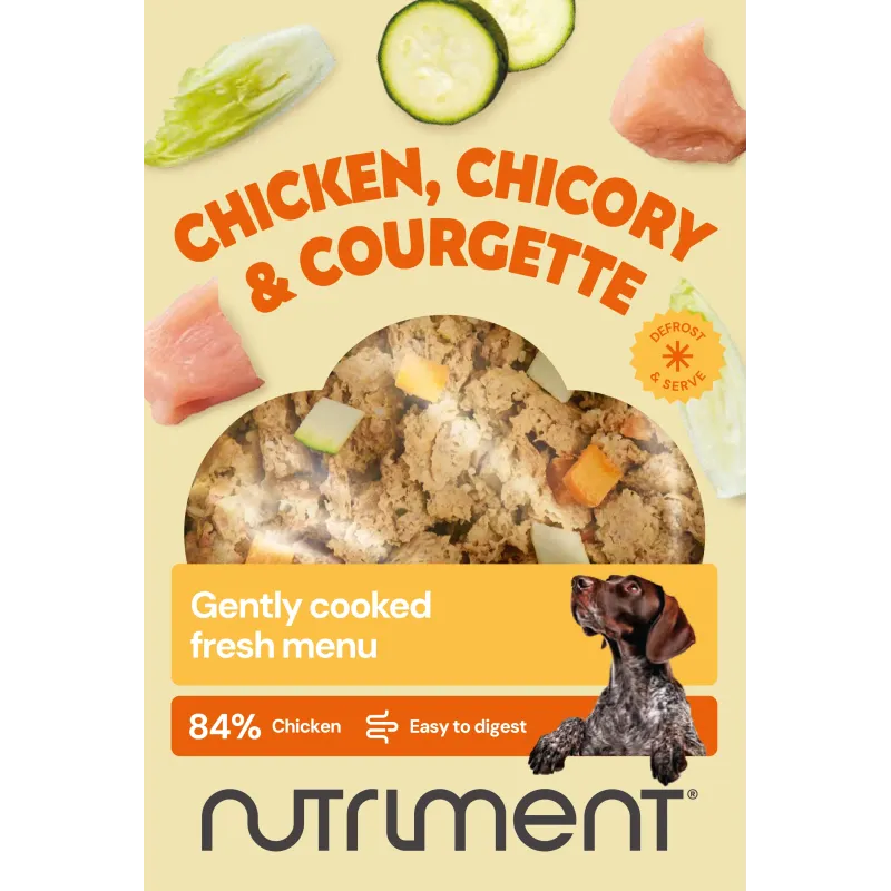 Un menú delicadamente equilibrado de tierno pollo, que combina a la perfección con aromática achicoria y suave calabacín. Esta receta de fácil digestión, elaborada con carne de alta calidad e ingredientes equilibrados, convence por su sabor natural y su calidad saludable.