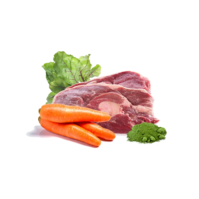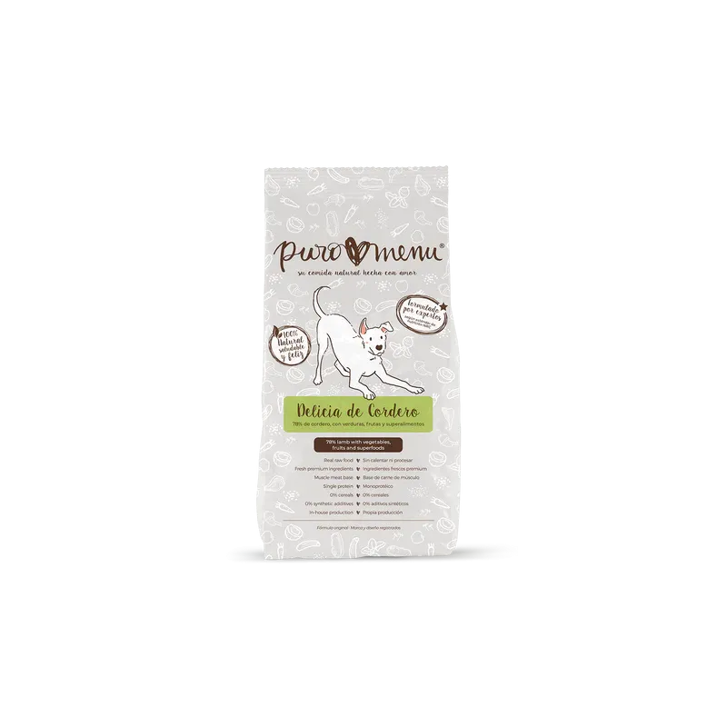 Alimento BARF completo y equilibrado para perros de cualquier raza, elaborado con un 78% de cordero como única fuente de proteína animal. Se trata de una receta 100% natural, sin cereales, gluten ni aditivos sintéticos, con carne fresca de músculo de alta calidad como ingrediente principal.