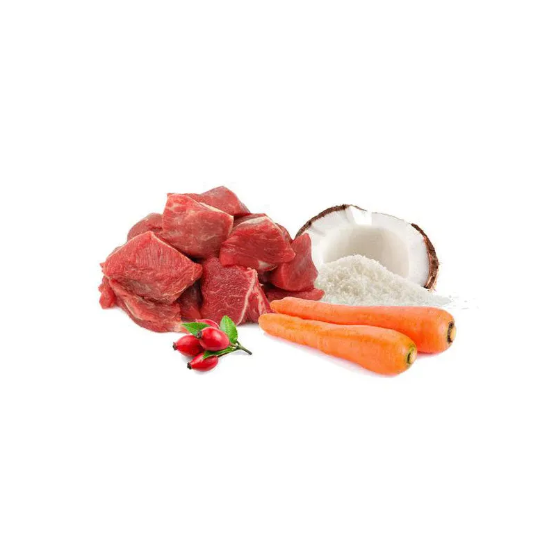 Alimento completo y equilibrado para gatos y gatitos de cualquier raza, elaborado con un 95% de vacuno, acompañado de zanahoria y coco. Su ingrediente principal es carne fresca de músculo y utiliza una única fuente de proteína animal, con un amplio perfil de aminoácidos y rico en hierro, zinc y vitamina B12.
