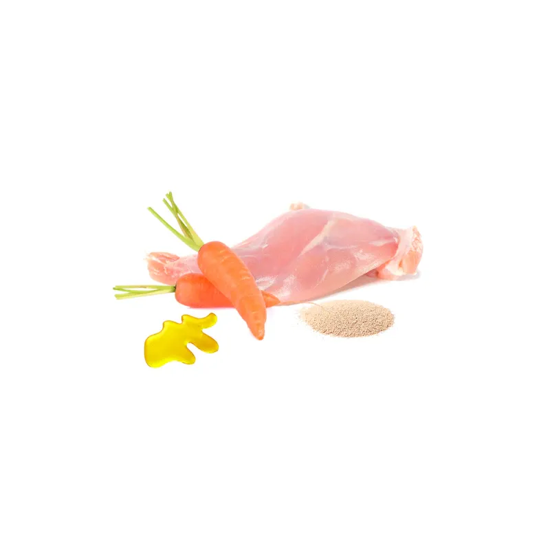 Alimento completo y equilibrado para gatos y gatitos de cualquier raza, elaborado con un 95% de conejo, acompañado de zanahoria y coco. Su ingrediente principal es carne fresca de músculo y utiliza una única fuente de proteína animal, siendo el conejo una excelente fuente de selenio.