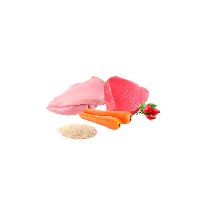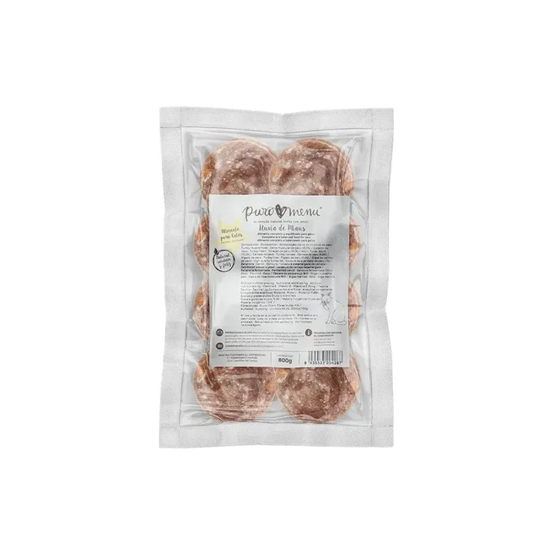 Alimento BARF completo para gatos con fermentos naturales probióticos, elaborado con un 95% de carne de alta calidad, sin harinas cárnicas ni subproductos. Combina dos fuentes de proteína animal: pavo, rico en ácido linoleico, y atún, muy apreciado por los gatos.