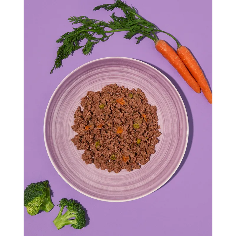 Una deliciosa comida húmeda completa para perros adultos, elaborada con un 65% de carne fresca de ternera y pollo, que aporta proteínas de alta calidad y un sabor irresistible. Su receta grain free está enriquecida con verduras y superalimentos como zanahorias, brócoli y algas, que ayudan a favorecer la digestión y el bienestar general.