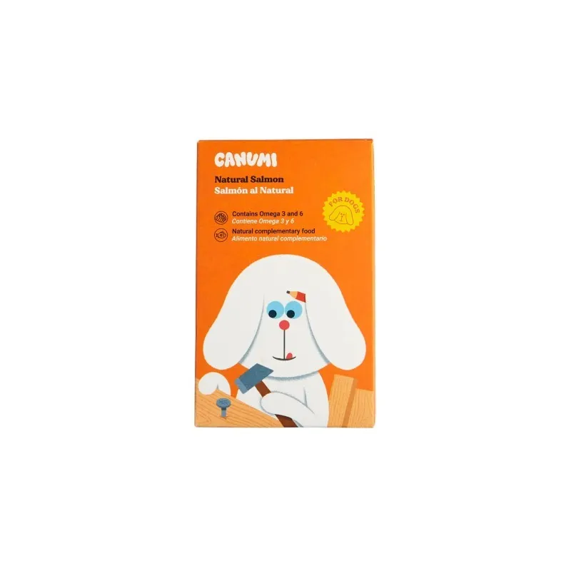 Conserva 100% natural de salmón ideal para perros de todas las edades, razas y tamaños.
