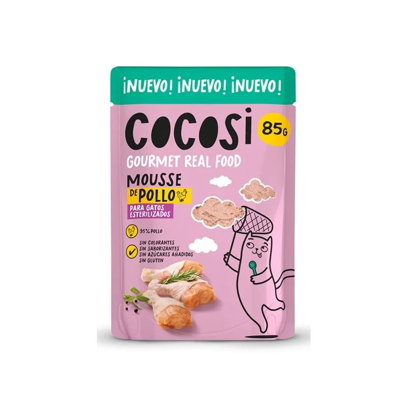 COCOSI Gourmet Real Food Mousse de Pollo para gatos esterilizados es una receta suave y deliciosa, especialmente adaptada a las necesidades de los gatos esterilizados.