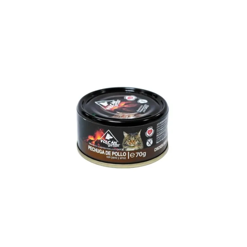 La gama de latas para gatos Volcán Petfoods está elaborada con carnes y pescados de alta calidad, cuidadosamente seleccionados para garantizar una alimentación nutritiva y sabrosa. Sus recetas combinan ingredientes como atún del Pacífico, pollo o mariscos, ofreciendo una amplia variedad de sabores para satisfacer a los gatos más exigentes.