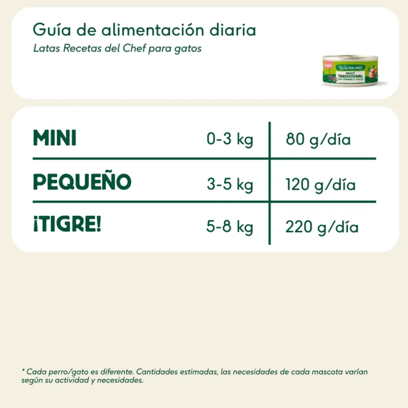 La gama de latas para gatos Wild Balance incluye distintas recetas de carne y pescado, pensadas para aportar sabor, nutrición y variedad en la dieta diaria de tu felino. Son ideales tanto como alimento habitual como para ofrecer una opción diferente dentro de su rutina alimentaria.