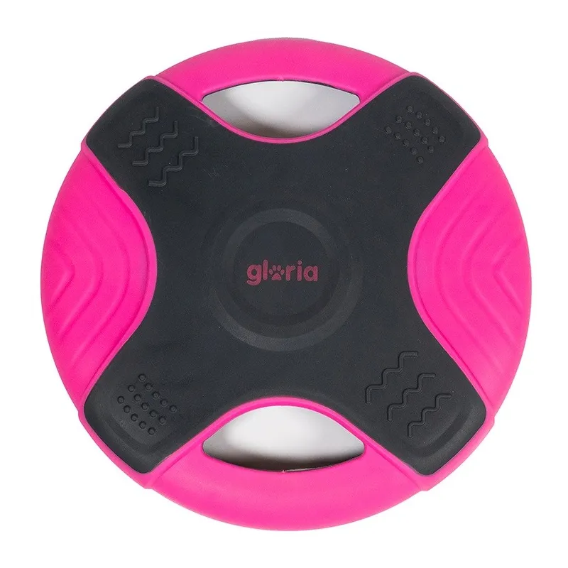 Está fabricado en TPR, un material utilizado habitualmente en juguetes para perro por su flexibilidad y resistencia, y se presenta en llamativos colores, muy visible durante el juego. Cuenta con un diámetro aproximado de 25 cm, una medida versátil para sesiones de juego tanto en interiores amplios como en exteriores.