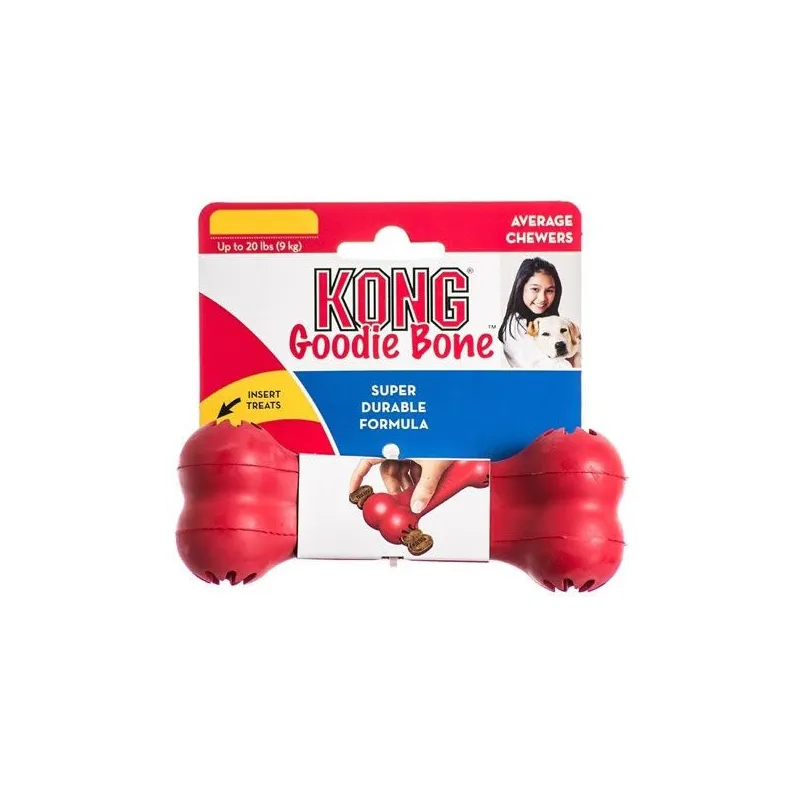 KONG Goodie Bone es un juguete para perros fabricado en resistente caucho natural con forma de hueso, diseñado para satisfacer el instinto de masticación y fomentar el juego.
