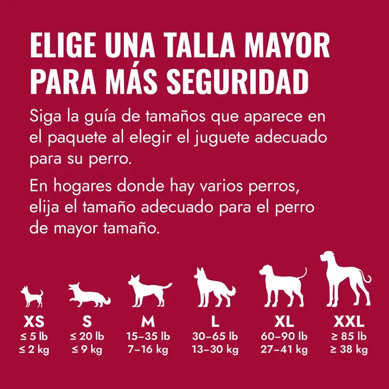 Su forma permite un rebote irregular que estimula el juego activo, y puede rellenarse con comida o snacks para prolongar el entretenimiento y fomentar la estimulación mental.