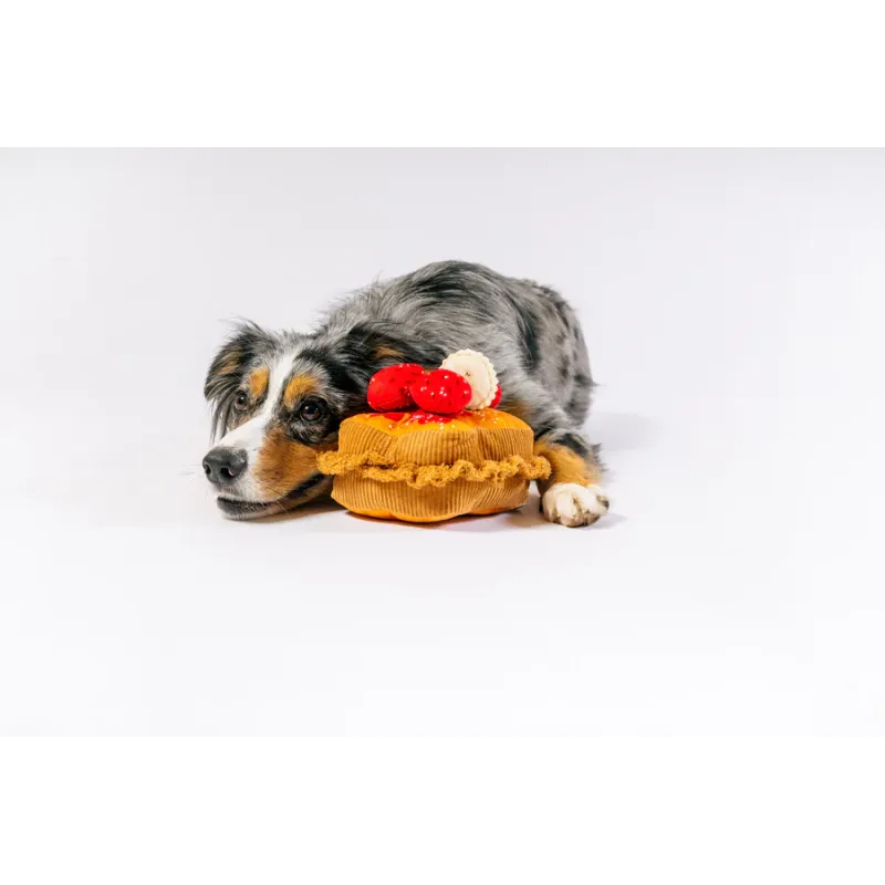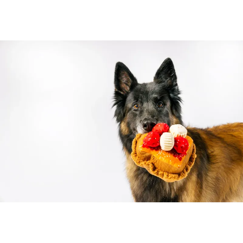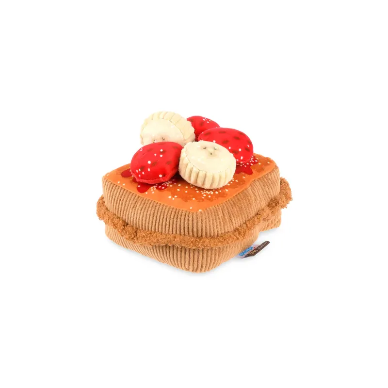 Delicioso juguete de peluche con forma de tostadas francesas, con squeaker y efecto crujiente que estimulan el juego y mantienen a tu mascota activa y entretenida.
