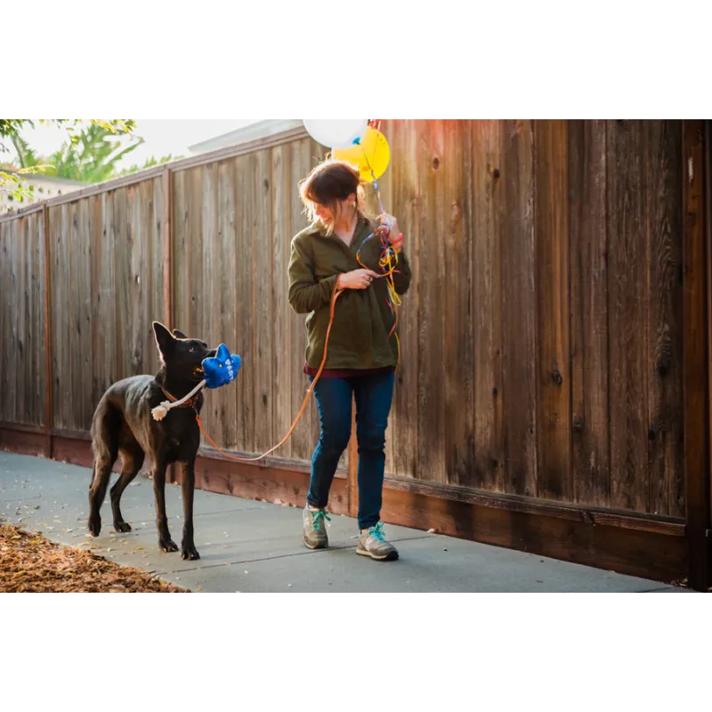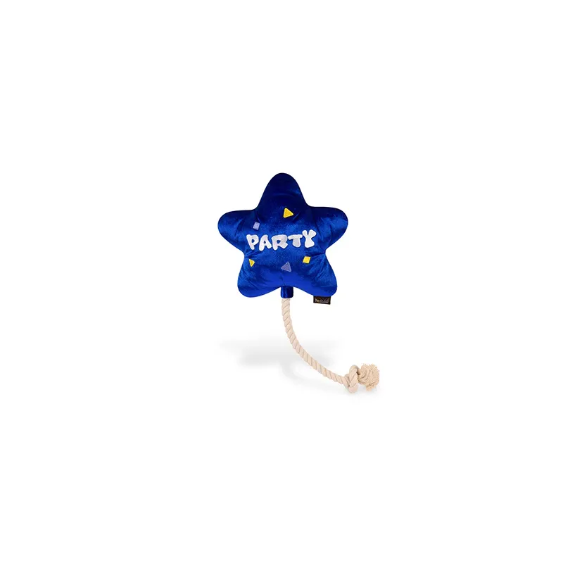 Divertido juguete de peluche con forma de globo de fiesta, con cuerda integrada, squeaker y efecto crujiente que estimulan el juego interactivo y el tira y afloja.