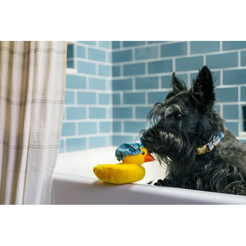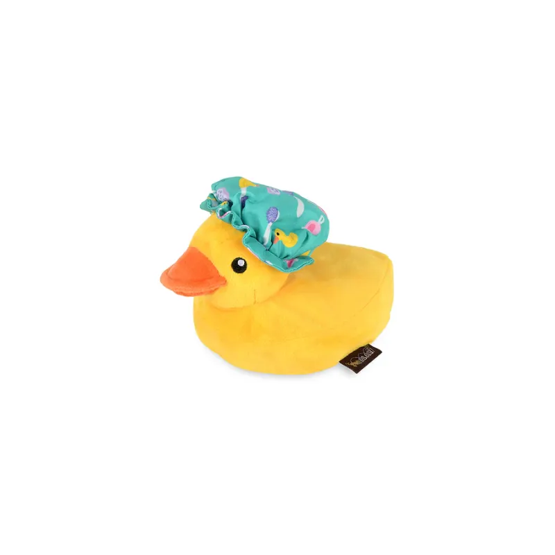 Divertido juguete de peluche con forma de patito, con squeaker interior que imita el sonido de un patito real y detalles crujientes que estimulan el juego.
