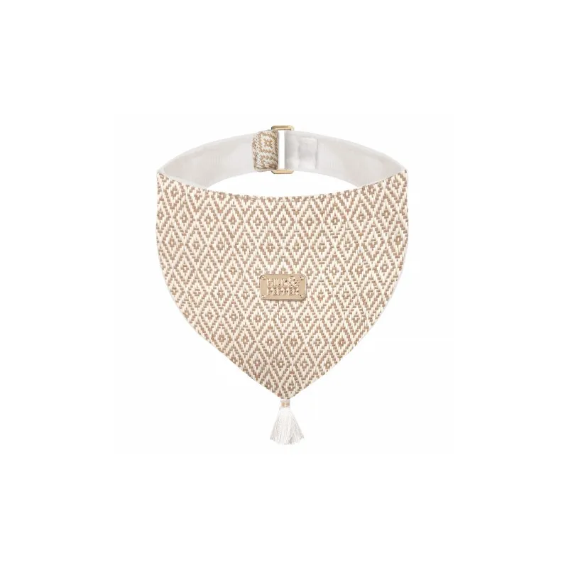 Con su diseño en tejido con motivos geométricos en tonos crudos, esta bandana combina estética y comodidad, convirtiéndose en una opción ideal para completar el outfit diario de tu mascota con un aire sofisticado y actual.