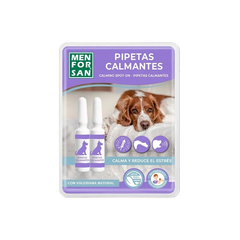 Las pipetas calmantes para perros Menforsan son una solución natural y eficaz para ayudar a reducir el estrés, la ansiedad y los problemas de comportamiento en tu mascota.