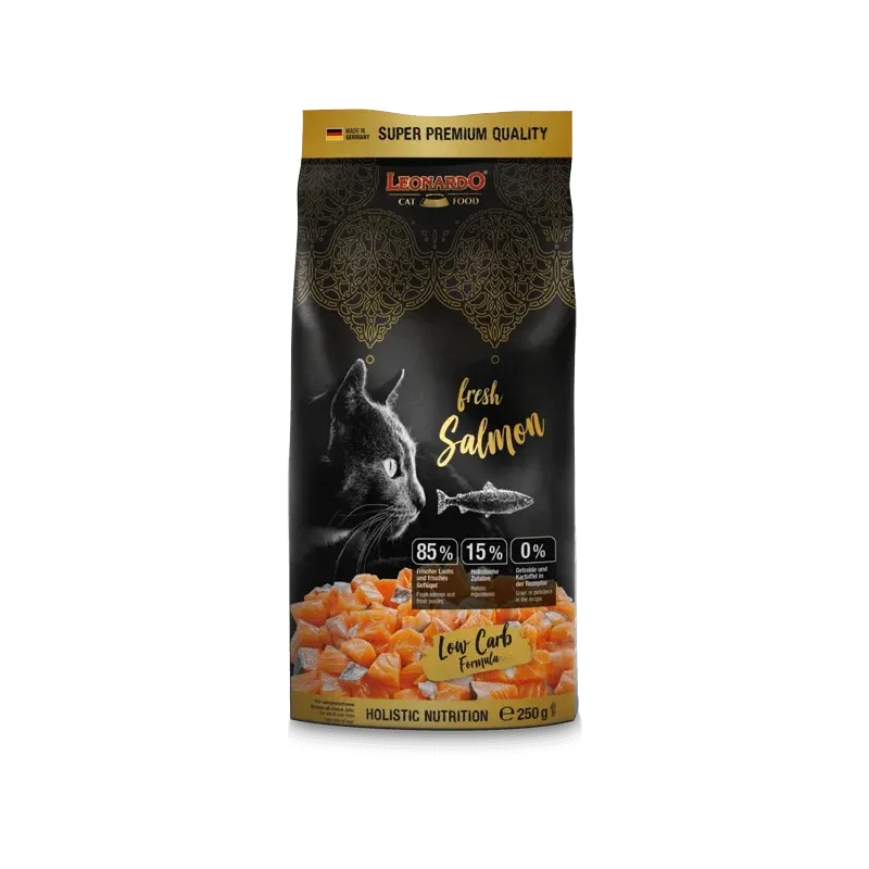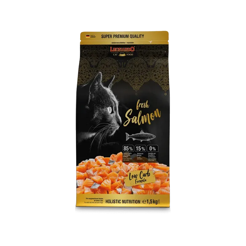LEONARDO fresh Salmon está indicado para gatos adultos y resulta especialmente adecuado para quienes buscan una receta sin cereales, con alto contenido en ingredientes frescos y excelente aceptación. :contentReference[oaicite:9]{index=9}