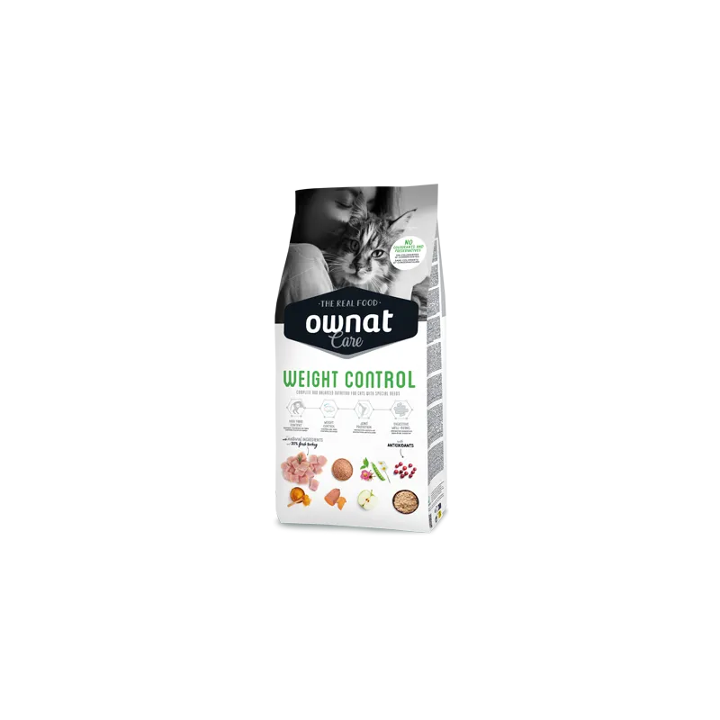 El pienso Ownat Care para Gatos Control de Peso es un pienso completo y equilibrado para gatos adultos con sobrepeso o tendencia a engordar.