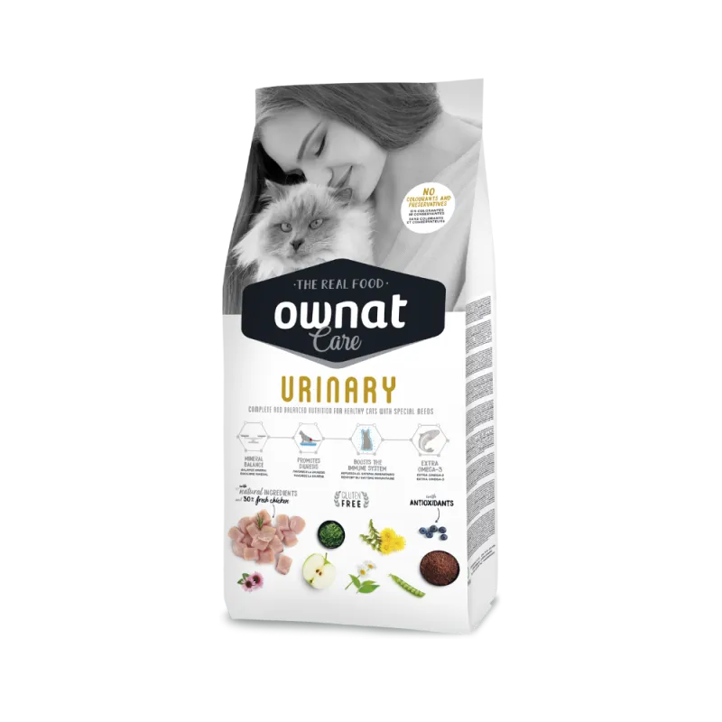 El Pienso Ownat Care para Gatos Urinary es un pienso completo y equilibrado para gatos adultos con sensibilidad en el tracto urinario.