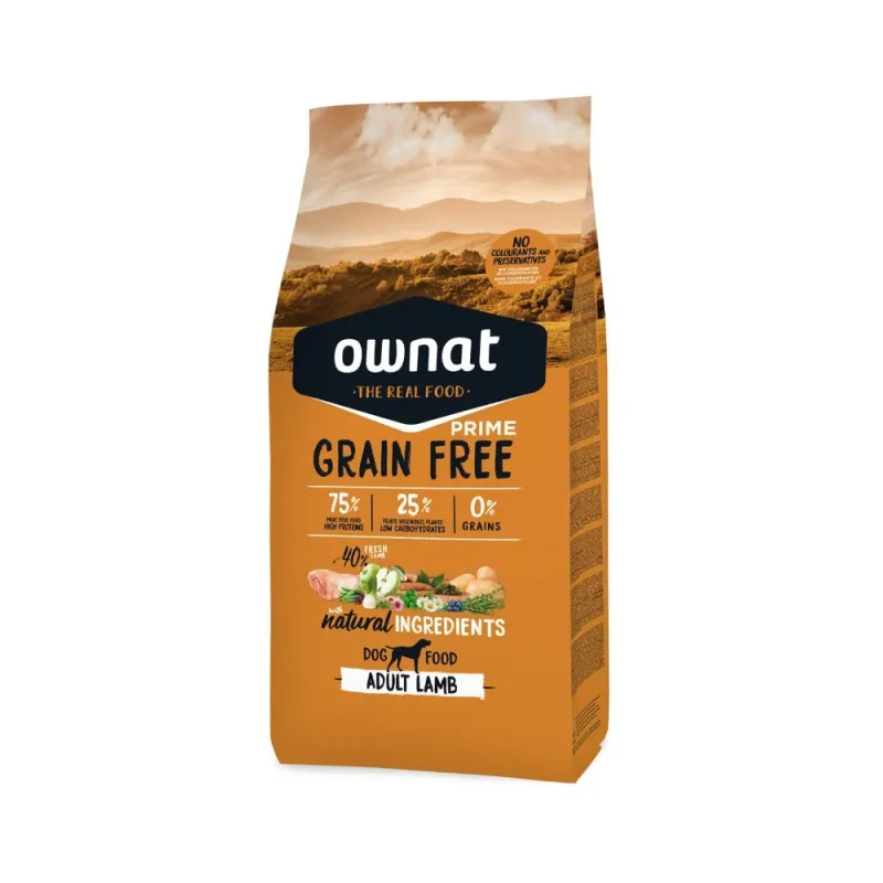 El pienso Ownat Grain Free Prime Cordero es un pienso completo y equilibrado para perros adultos de todas las razas.