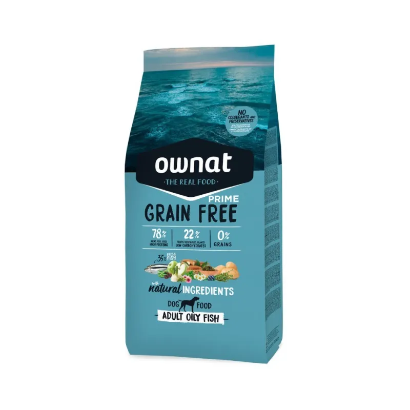 El pienso Ownat Grain Free Prime Pescado Azul es un pienso completo y equilibrado para perros adultos de todas las razas.