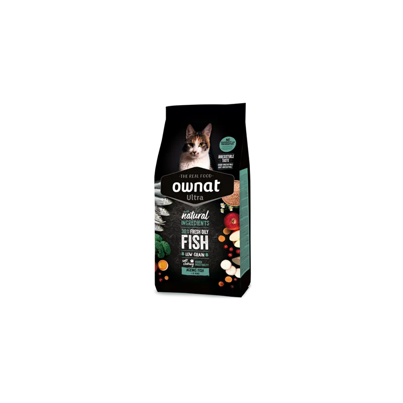 El pienso Ownat Ultra para Gatos Ageing Pescado es un pienso completo y equilibrado para gatos mayores de 12 años.
