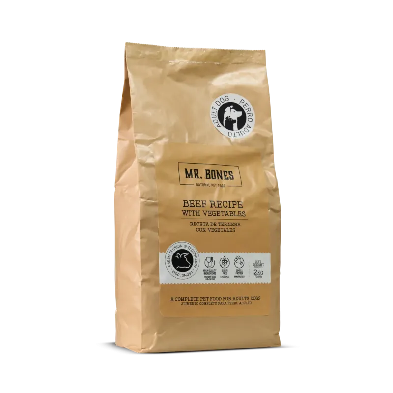 El Pienso sin Cereales de Ternera con Vegetales de Mr. Bones es un alimento completo y equilibrado para perros adultos, formulado con ingredientes de alta calidad y pensado para ofrecer una nutrición natural, digestiva y sabrosa en el día a día.