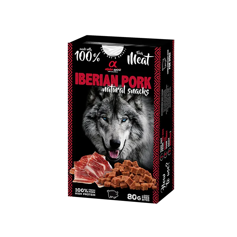 El Natural Snack de Jamon Iberico Alpha Spirit es un alimento complementario para perros formulado para ofrecer un premio de calidad, con un perfil nutricional equilibrado y una alta palatabilidad. Está pensado para complementar la dieta diaria del perro sin renunciar a ingredientes seleccionados y un sabor atractivo.