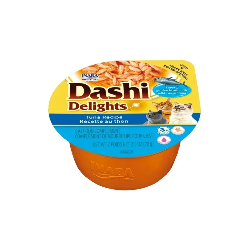 Dashi Delights de atún para gatos es un caldo de pescado tradicional japonés a base de hojuelas de atún listado, famoso por su rico sabor.