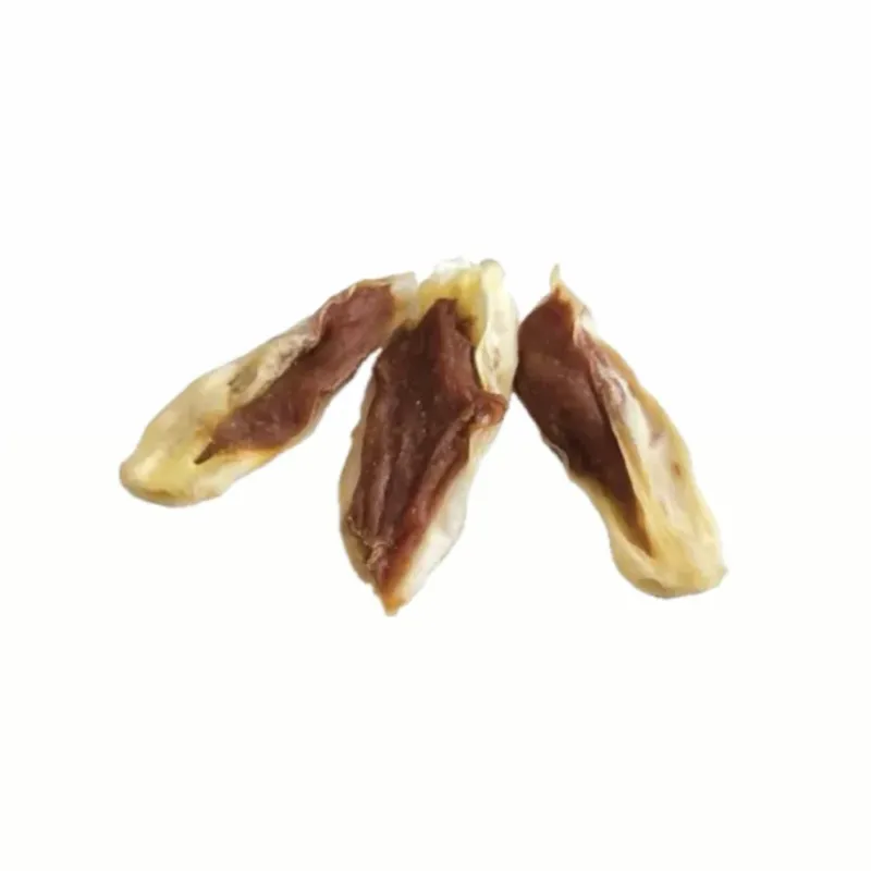 La oreja de conejo rellena de pato es un snack natural muy sabroso y completo, ideal como premio o complemento en la alimentación de las mascotas.