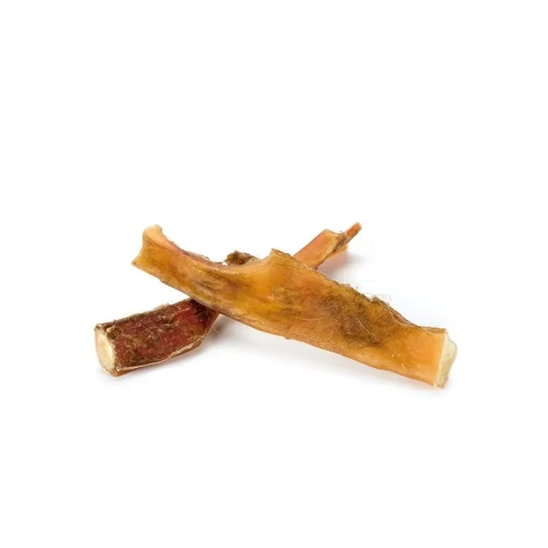 La piel de cabeza de ternera es un snack natural y resistente, elaborado a partir de piel de la zona de la cabeza, ideal como premio o complemento en la alimentación de las mascotas.