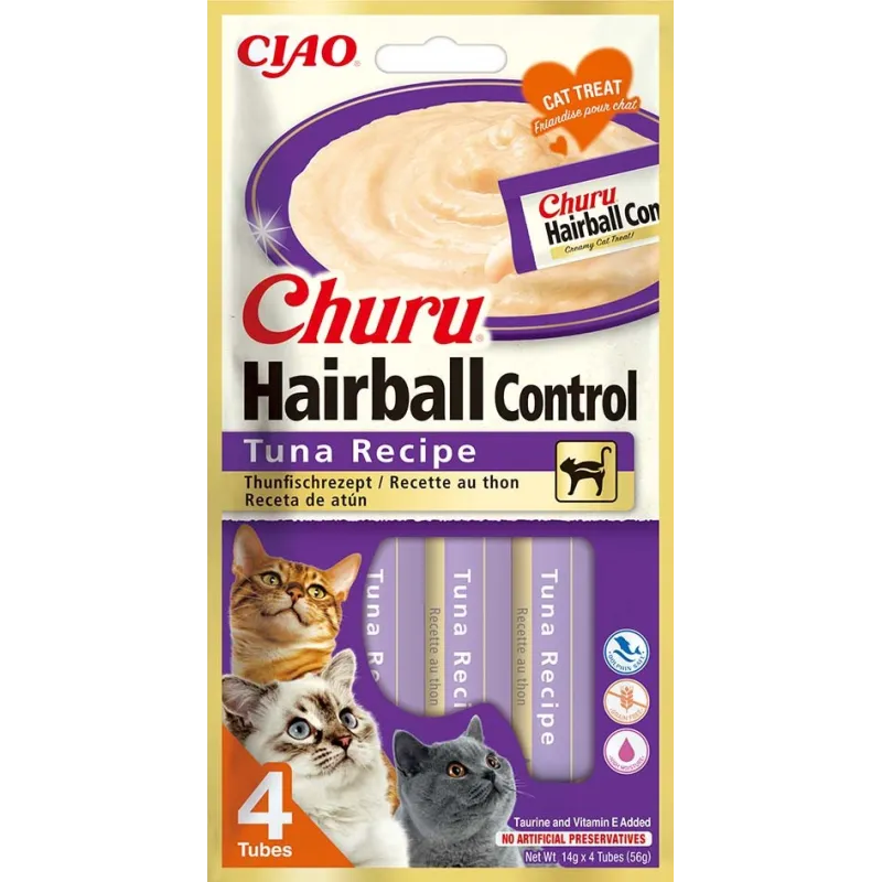Receta Hairball Atun Churu Gatos 4x14gr