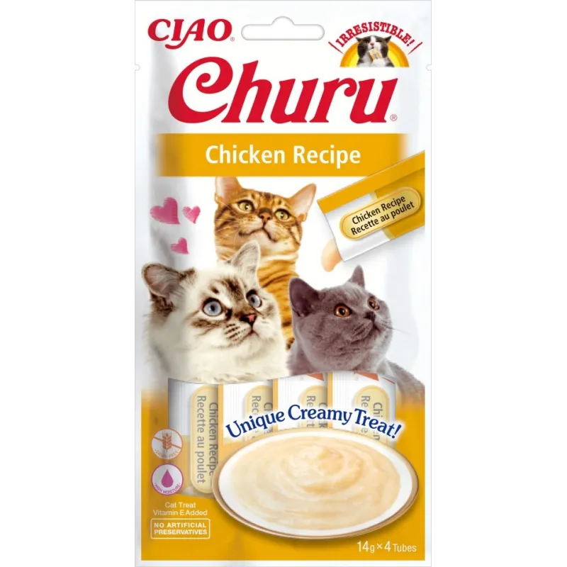 Los Churu son snacks cremosos para gatos que vienen en tubos individuales y se ofrecen directamente para que el gato los lama.