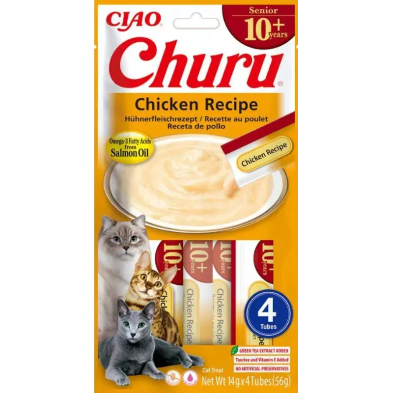 Snack funcional en formato puré, creado específicamente para gatos de edad avanzada.