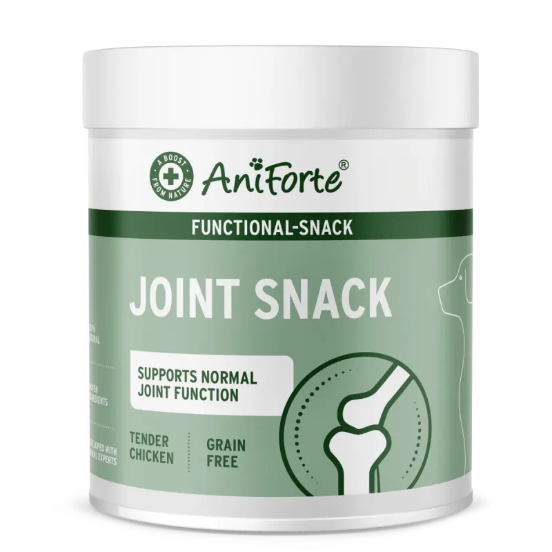 AniForte Joint Snack es un snack funcional natural para perros, formulado para apoyar la salud articular de forma práctica y deliciosa. Elaborado con un alto contenido en pollo y enriquecido con mejillón de labio verde de Nueva Zelanda, este premio diario ayuda a complementar la alimentación de perros que necesitan un cuidado extra de las articulaciones y el cartílago.