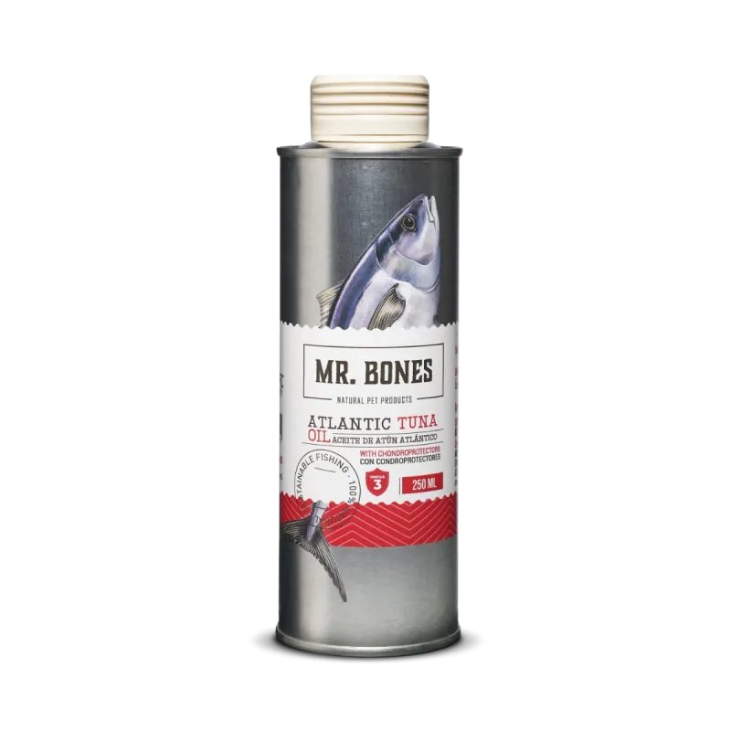 El Aceite de Atún con Condroprotectores de Mr. Bones es un suplemento natural diseñado para enriquecer la alimentación diaria de perros y gatos de forma sencilla, sabrosa y funcional.