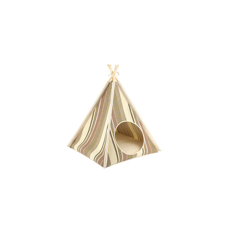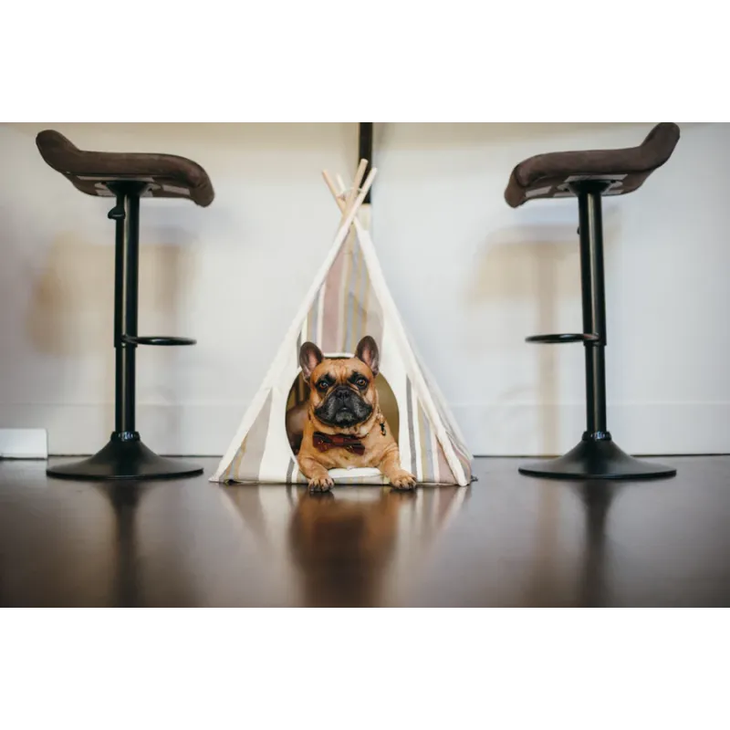 Refugio con forma de tipi diseñado para ofrecer a perros y gatos un espacio cómodo, acogedor y visualmente atractivo dentro del hogar.
